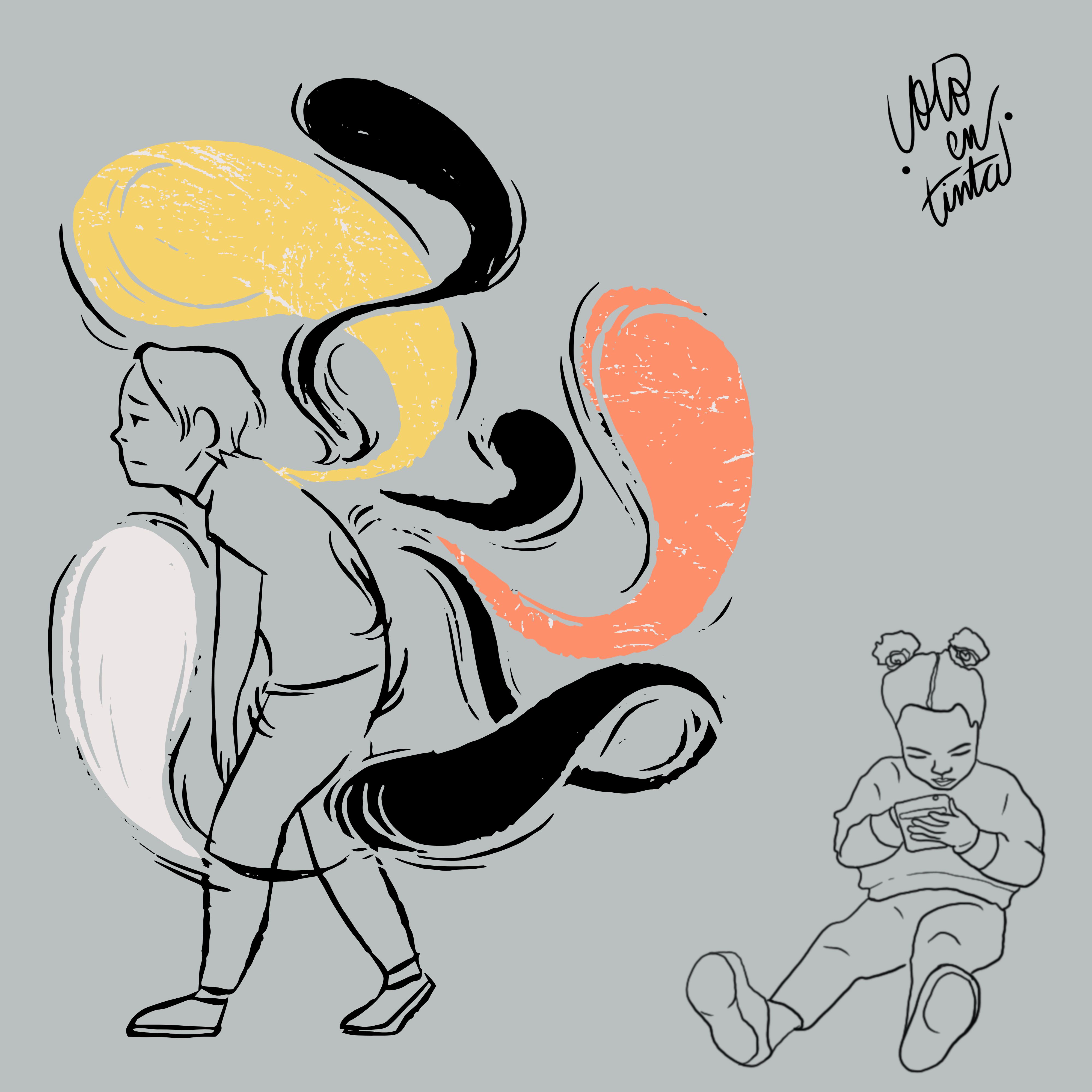 Detrás de ellas, niños de ojos clavados en pequeñas pantallas esparcen exaltaciones –estamos jugando en línea- me dice uno cuando le pregunto.