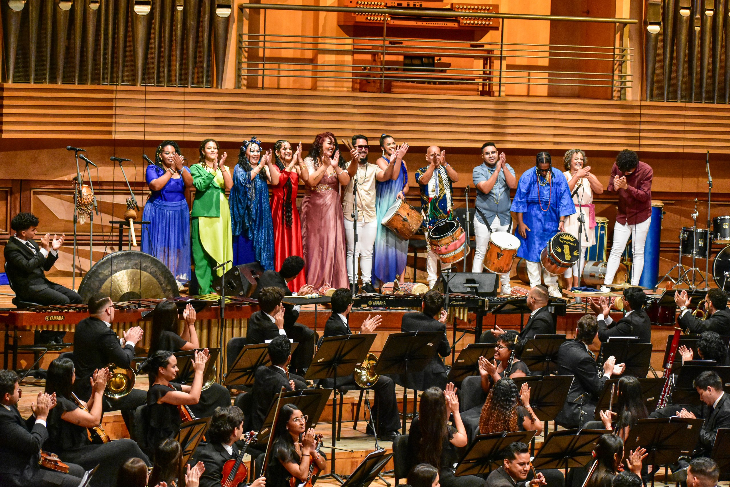 Vayamos ahora, por favor, a lo que fue el Concierto de Clausura, donde vimos una colorida puesta en escena que aún resuena en los corazones de las y los presentes, donde las salas que ya de por sí son un derroche de armonía, como por ejemplo, la Simón Bolívar con butacas que reproducen el cinetismo de Cruz-Diez, -como la misma fachada del mencionado centro donde se conjugan tanto la obra de este maestro con otro igualmente mayor, Jesús Soto-.