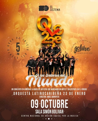 A los salseros del mundo, un concierto con la Orquesta Latinocaribeña del 23 de enero.