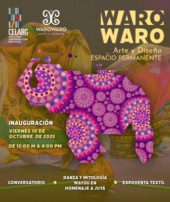 El CELARG te invita a la inauguración de la sala permanente Waro Waro arte y diseño el espacio, contará con la presentación de danza inspirada en la mitología wayú y en homenaje a juyá.