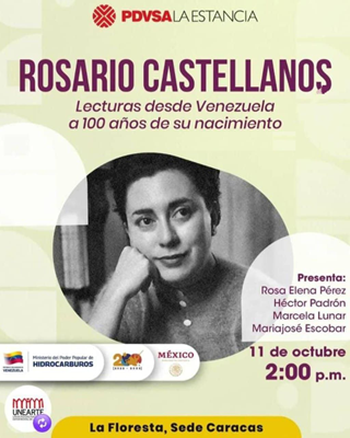 En PDVSA La Estancia se llevará a cabo el homenaje a Rosario Castellanos Lecturas desde Venezuela a 100 años de su nacimiento.