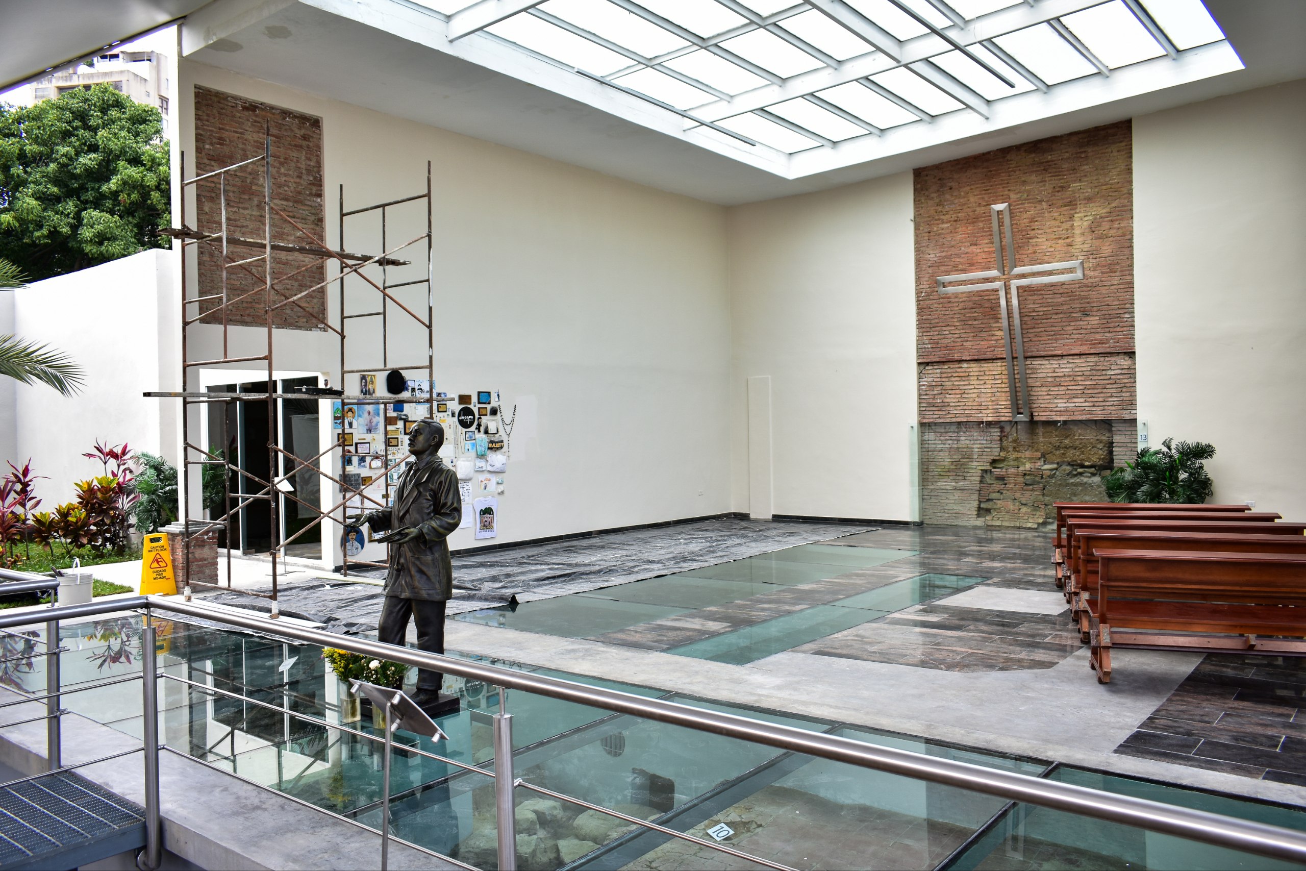 Una pasarela y plataformas de vidrio templado permiten a quienes visitan caminar sobre la historia. Ver esos ladrillos antiguos y restos de pared, es un recordatorio tangible de los pasos de quien el próximo 19 de octubre será canonizado.