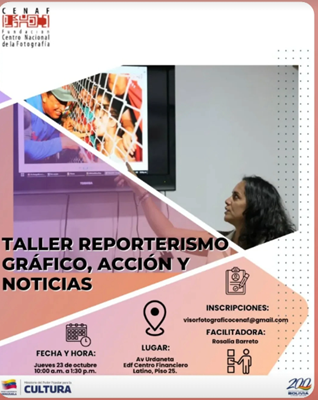 El CENAF te invita a sus talleres: Reporterismo gráfico, acción y noticias con la facilitadora Rosalia Barreto y Narrativa visual con el facilitador, Martín Ustáriz.