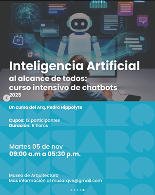 Inscríbete y transforma tu futuro en el diseño arquitectónico con los cursos del Musarq Museo de Arquitectura, amplía tus conocimientos en: inteligencia artificial, sketchup, revit y autocad.
