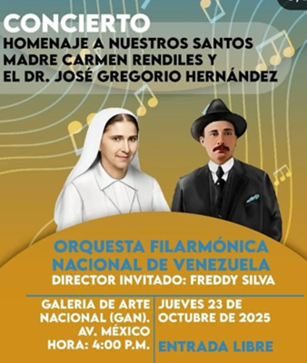 La Galería de Arte Nacional te invita al concierto Homenaje a nuestros santos: Madre Carmen Rendiles y Doctor José Gregorio Hernández.