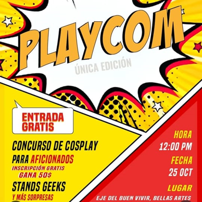 Playcom evento de cosplay, única edición. Entrada gratis, concurso de cosplay para aficionados, inscripción gratis.