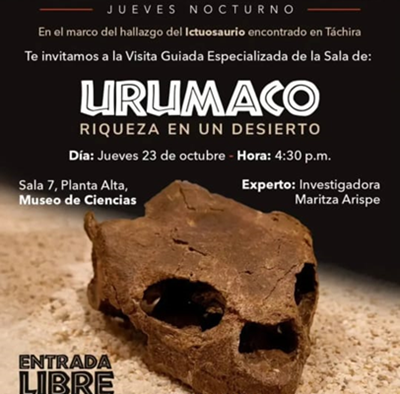 En el marco del hallazgo del ictuosaurio encontrado en Táchira, El Museo de Ciencias te invita a la visita guiada especializada de la sala de URUMACO: RIQUEZA EN UN DESIERTO.