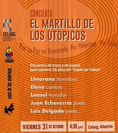 El CELARG ubicado en Altamira, te invita al concierto El martillo de los utópicos un encuentro de grandes voces de la trova y poesía.