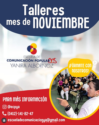 La Escuela de Comunicación Popular Yanira Albornoz, presenta su programación de talleres del mes de noviembre, dirigidos a fortalecer las competencias en distintas áreas.