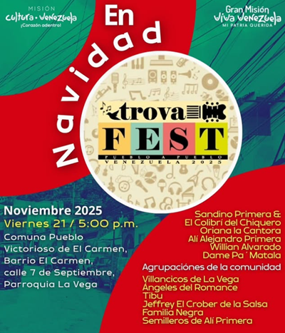 La Vega se viste de gala para celebrar la llegada de la Navidad. La Misión Cultura y el Trova fest te invitan a compartir una tarde llena de talento, la cultura y la alegría popular te esperan.
