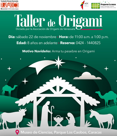 El próximo sábado 22 de noviembre el Museo de Ciencias junto a la Asociación de Origami de Venezuela te invita a un taller familiar lleno de creatividad para esta época navideña.
