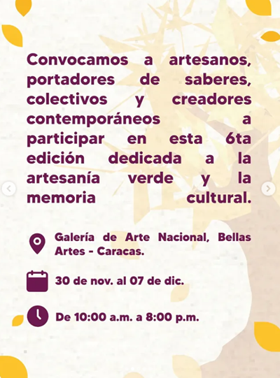 Llega nuevamente a la Galería de Arte Nacional la 6ª Feria Nacional de Artesanía 2025: Arte, Utilidad y Memoria. Inscríbete.