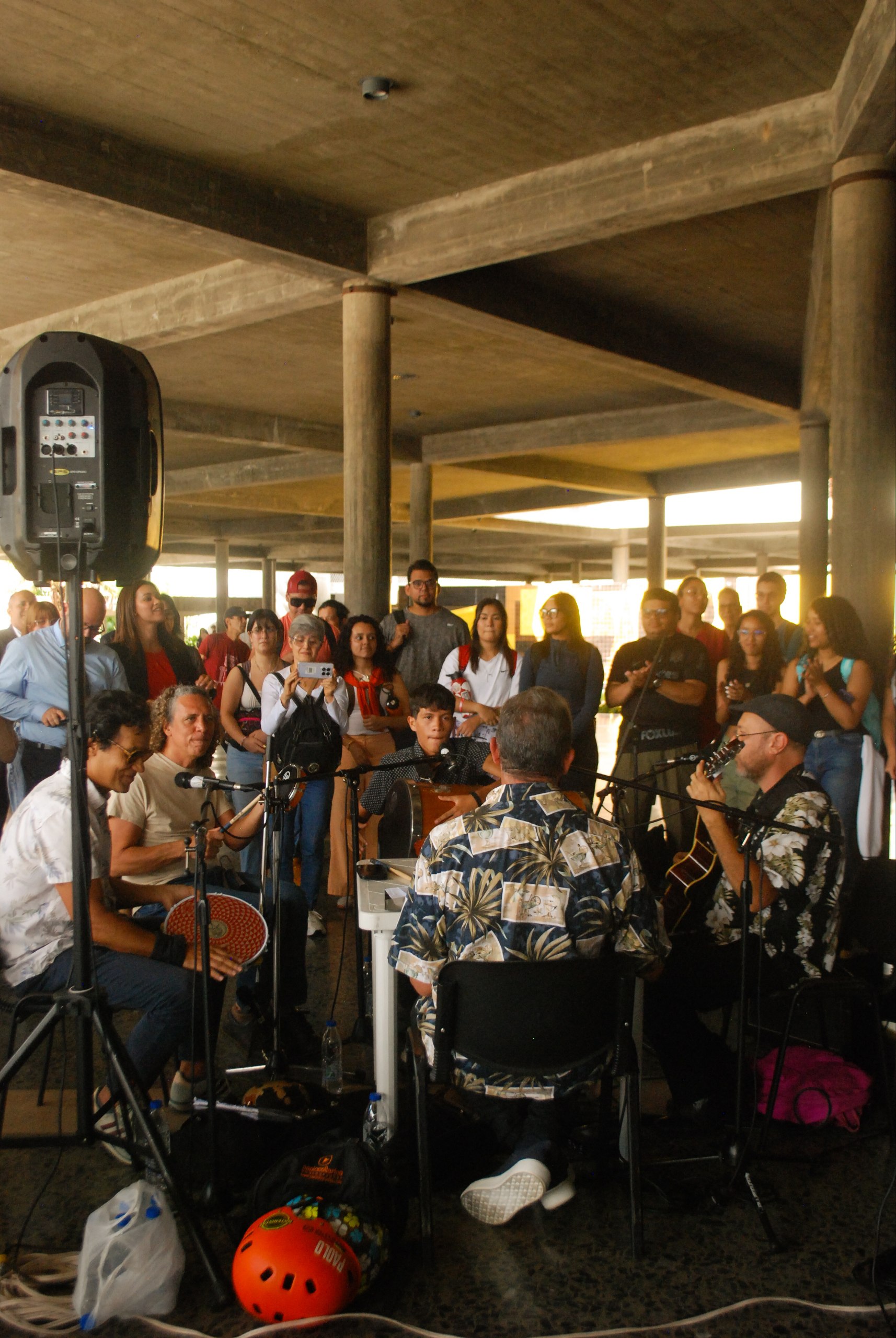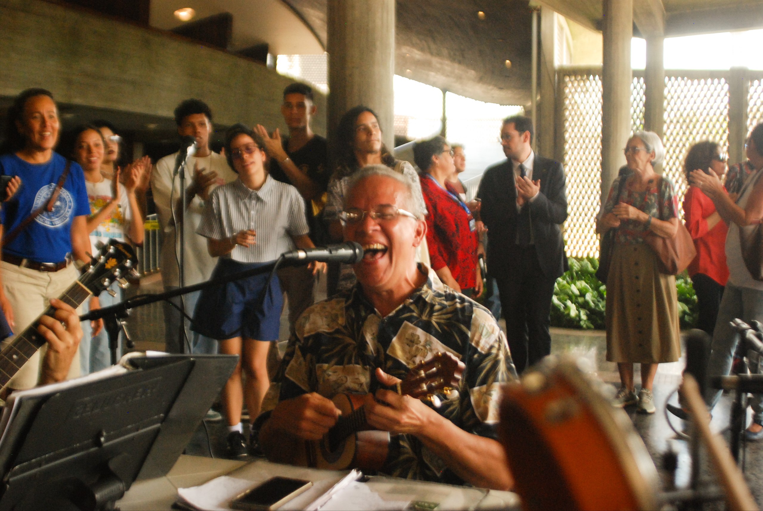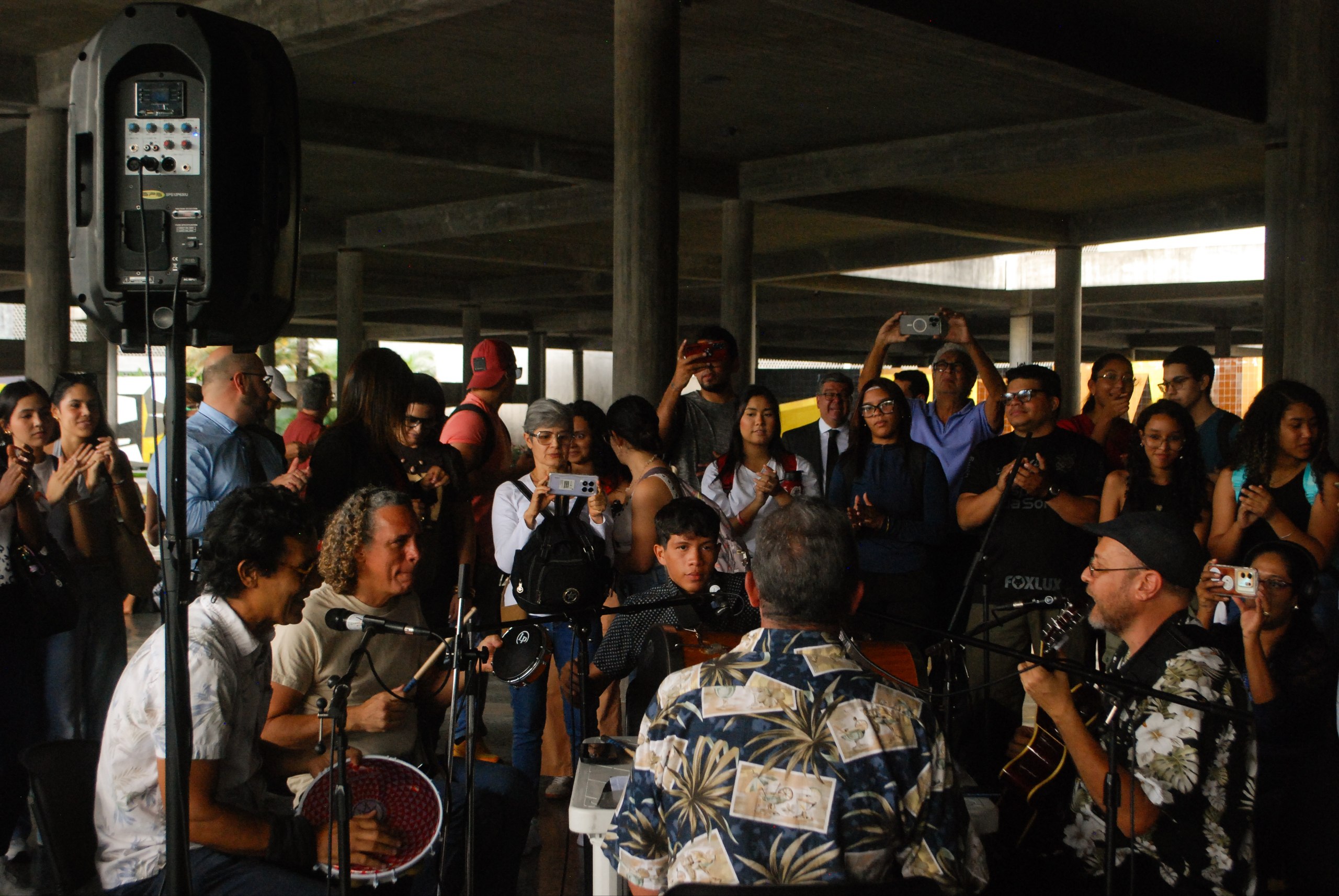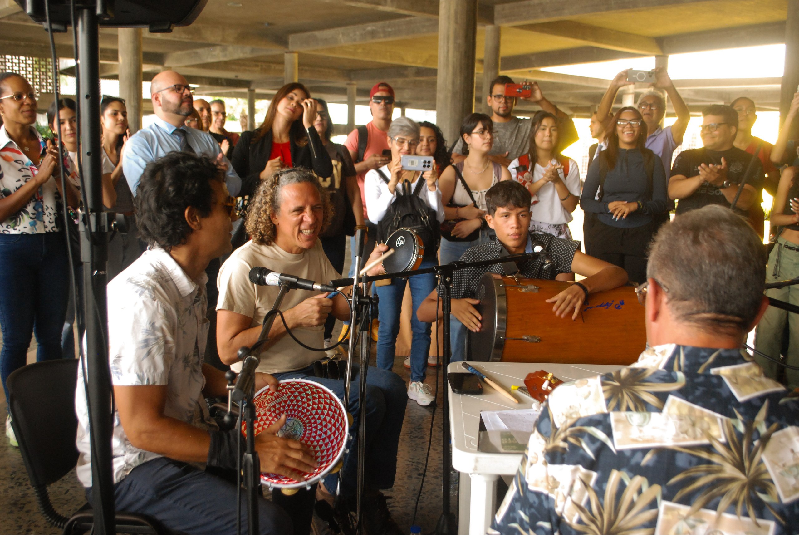 Ese día, la roda se efectuó en la plaza cubierta del Rectorado de la Universidad Central de Venezuela, a cargo de la mencionada agrupación, liderada por el músico y docente Pedro Isea. “Lá no avarandado / Na luz do meio dia / Um segredo nos teus olhos / Tanta coisa me dizia / O cabelo solto ao vento”, es la canción Flor de maracujá, de los compositores Joao Donato y Lysias Enio. En esa oportunidad se escuchó en la voz de la cantante Valentina Becerra, quien también es una invitada frecuente en estas rodas.