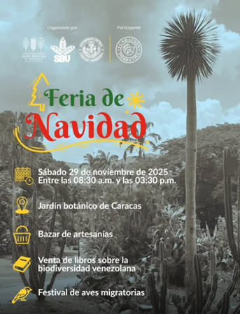 El Jardín botánico de Caracas te invita a su Feria de Navidad, bazar de artesanías, venta de libros sobre la biodiversidad venezolana y el gran festival de aves migratorias.
