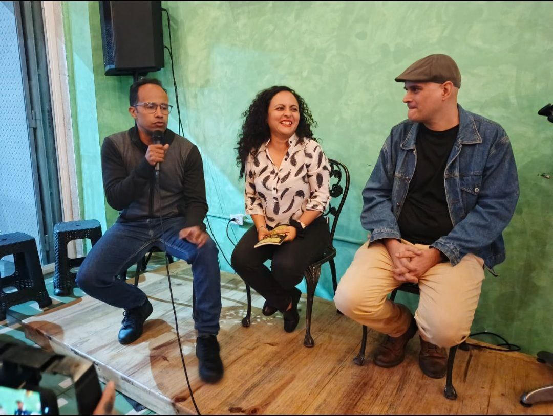 Y es que no hay otro parecido: El Cuchitril. Allí nos encontramos con hermanas y hermanos de diversas agrupaciones literarias que hacen vida en Caracas, a quienes esta vez se sumaron recitando sus poemas, de México: Adriana Tafoya y Svetlana Garza, quienes llevan adelante la editorial Verso Destierro; de Argentina: Dafne Piedemunt; de Uruguay: “Macca” (Gustavo Wojciechowski), y por Honduras: Karen Ayala y Otoniel Guevara, pareja que lleva a cabo la hermosa editorial centroamericana La Chifurnia que ha editado más de trescientos títulos, entre los que se encuentran los dieciocho de la Colección Eternoretornógrafo de poetas venezolanos.