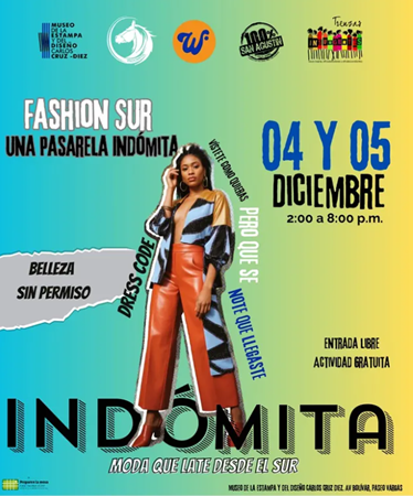 El Museo de la Imagen y la Estampa Carlos Cruz Diez te invita este 4 y 5 de diciembre al Fashion Sur: Pasarela Indómita. Un espacio para la moda en Venezuela con sus raíces afro, urbanas, indígenas y sostenibles. Entrada libre.