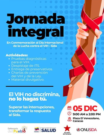 El Ministerio del P.P para la salud, la Defensoría del Pueblo, y la Alcaldía de Caracas te invitan a esta Gran Jornada integral en Conmemoración al Día Internacional de la Lucha contra el VIH - Sida.