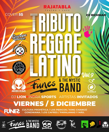 La gran fiesta de Tributo al Reggae Latino llega al Rajatabla bar, bellas artes. Disfruta las mejores versiones de este género con selección de sus exponentes latinos.