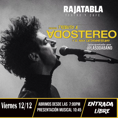 Uno de los mejores tributos de la ciudad, SODA STEREO a cargo de La Soda Band, llega con entrada libre.