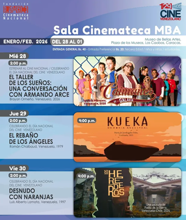 En reconocimiento al talento cinematográfico del país en la semana del Cine Nacional, las salas Cinemateca MBA y Celarg te invitan a disfrutar de historias nuestras.