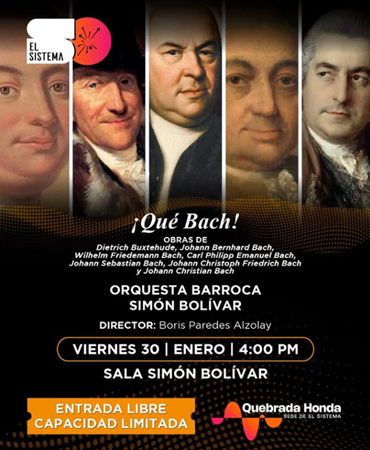 La Orquesta Barroca Simón Bolívar presentará el concierto titulado Qué Bach, bajo la dirección del maestro Boris Paredes Alzolay.
