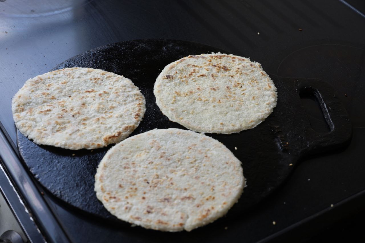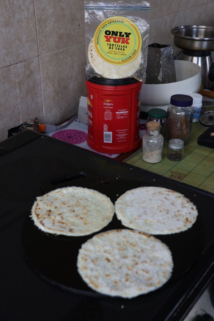 Después de buscar la yuca, lavarla, pelarla, cocinarla (en el agua que quedó hice caraotas: coherencia), rallarla, hacer las bolitas, luego aplastarlas, tostarlas ligeramente, empaquetarlas y congelarlas (ocho tortillas de aproximadamente 60 gramos cada una, casi medio kilo de yuca), la idea es venderlas.