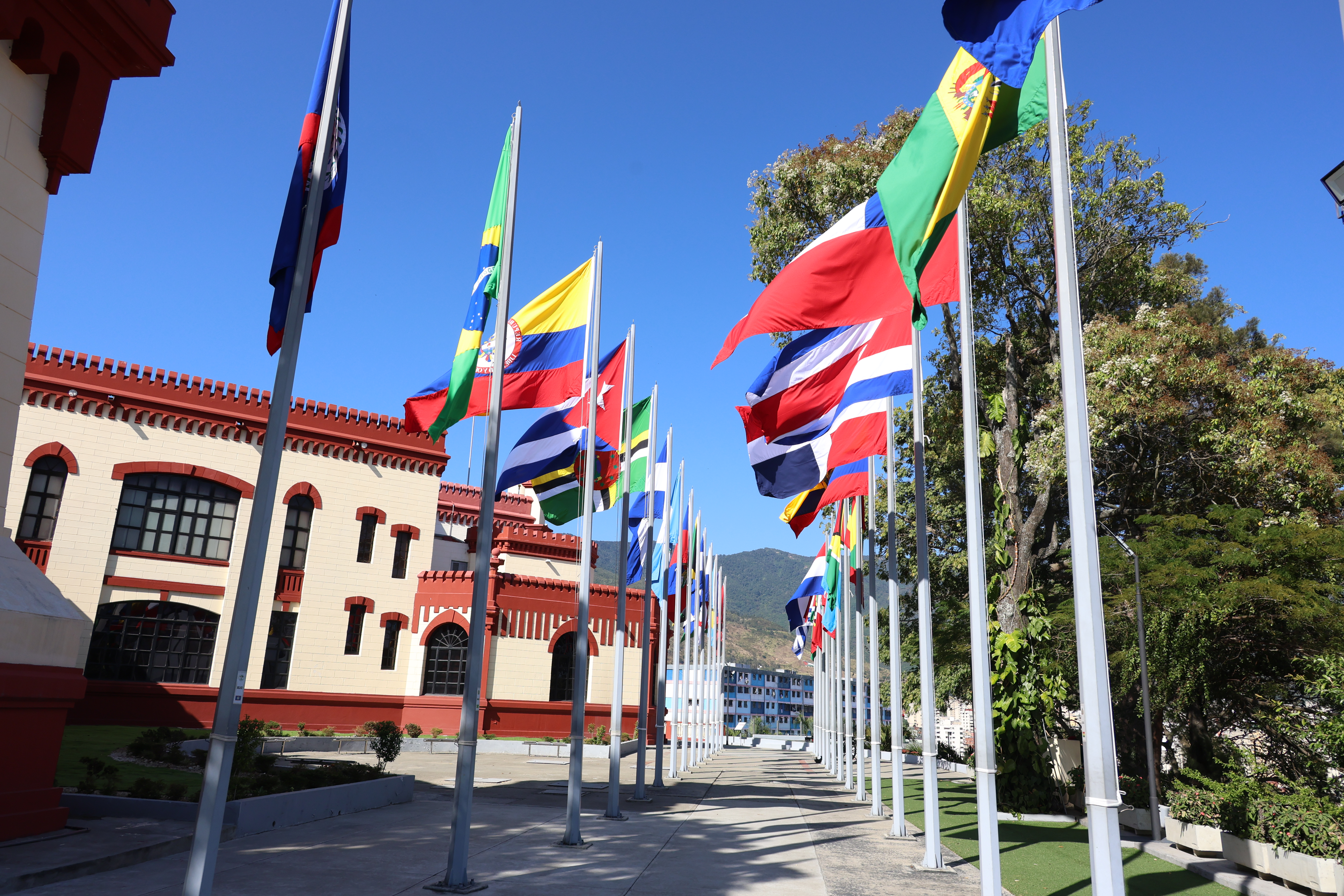Fuimos conducidos por el pasillo de las treinta y tres banderas de todas las naciones pertenecientes a la CELAC, un proyecto del Comandante Supremo Hugo Chávez, nos dirá Henry Castro, nuestro guía, un teniente de la milicia con un extraordinario conocimiento histórico del recinto en cuestión, donde funcionó la Academia Militar de Venezuela entre 1910 y 1949.