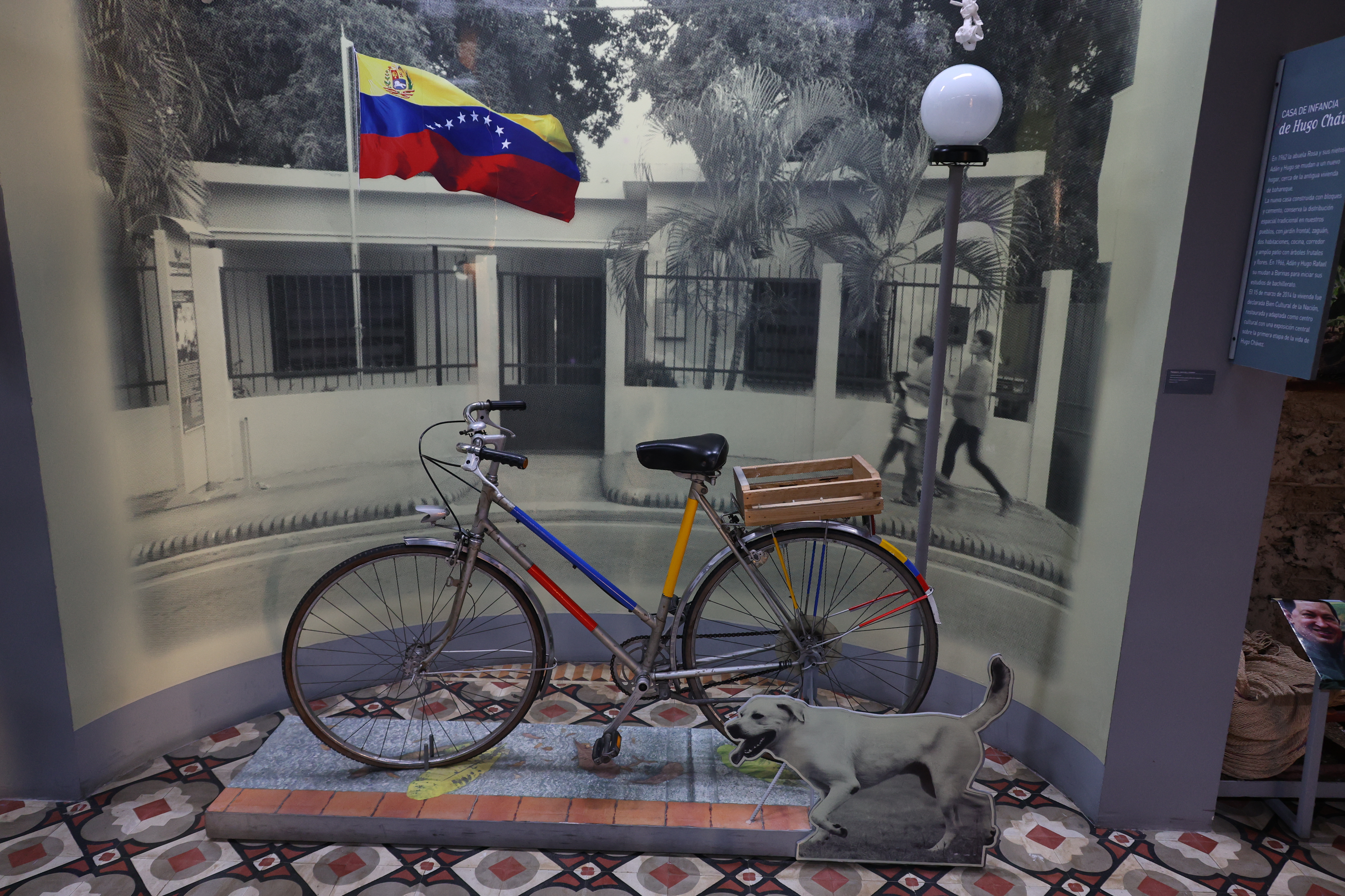 Estos son los pupitres de la época, de la escuelita donde acudió el Comandante de niño. Un poco más allá el cine, las películas que veía, el bate con el que jugó, el látigo Chávez, no eran familia, que se sepa, pero fue una de sus inspiraciones, recordemos que él mismo ha dicho que quería ser pelotero, indica Henry.