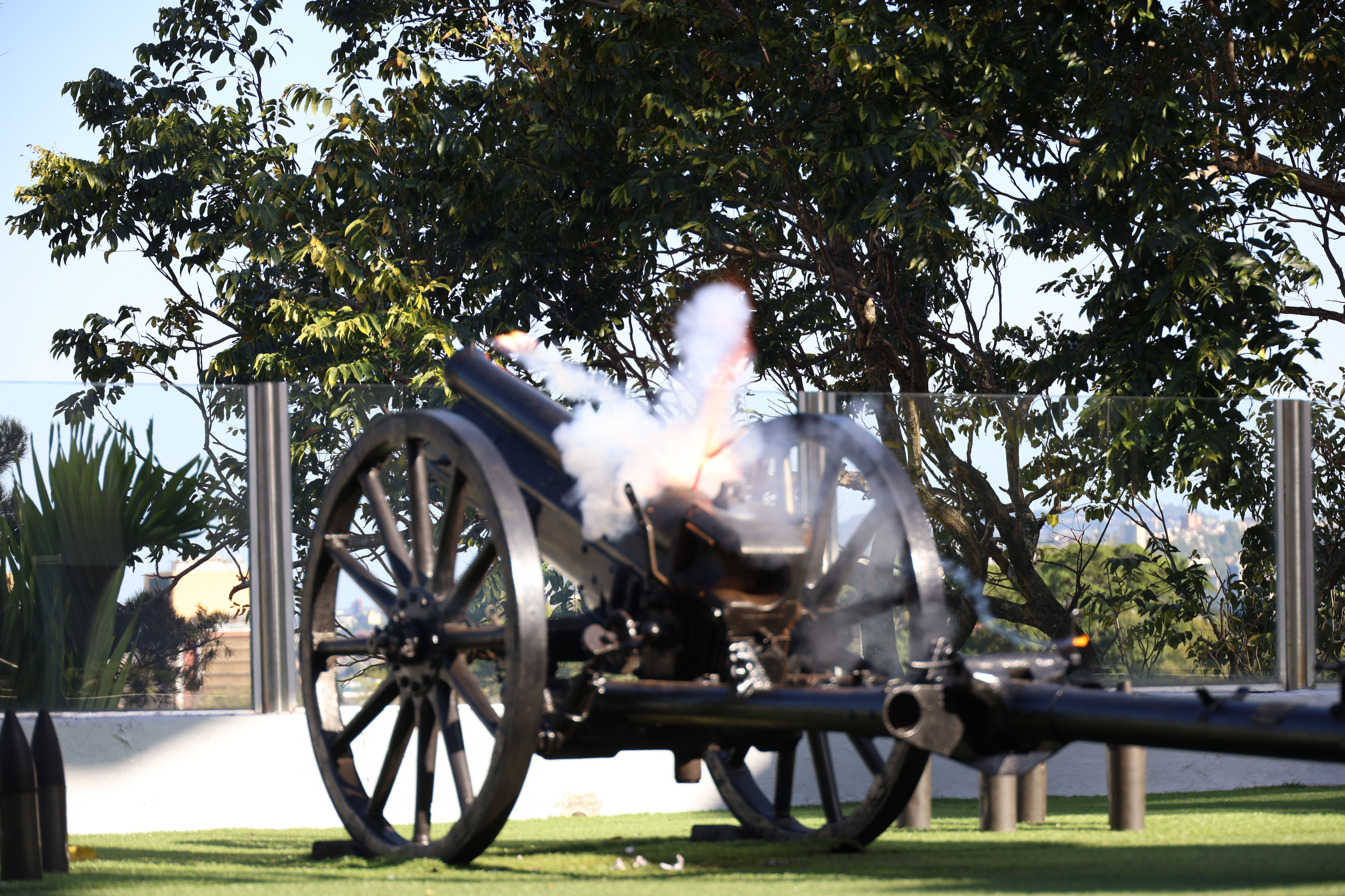 Salimos, volvemos unos metros antes del pasillo de banderas, van a presenciar la salva de cañón número 4638 desde marzo del 2013, esto se hace todos los días, nos dice Henry con la solemnidad que amerita.