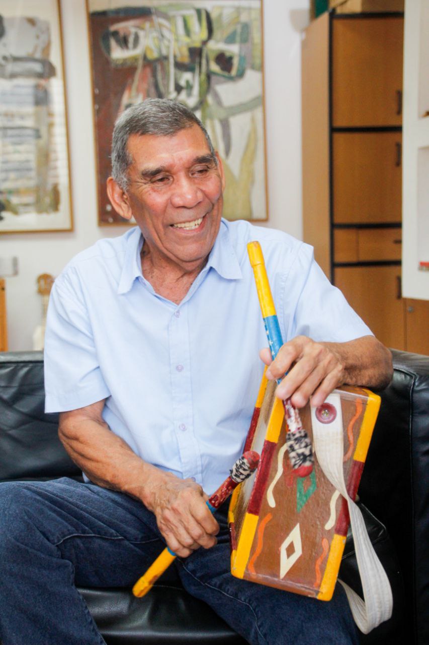 Mas, dentro del mundo del joropo oriental hay un instrumento que se llama caja oriental. Es cuadrada, como decir una gavetica, con un cuero de un lado y abierta, del otro, y se toca con unos palitos, que van golpeando alternativamente, el cuero y el borde de madera. Y nosotros tenemos acá en Caracas a un intérprete eximio, de este instrumento.