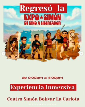 En los espacios del Centro Simón Bolívar de La Carlota se encuentran las exposiciones inmersivas Simón de Niño a Libertador y Niños en el espacio, viaje por el Sistema Solar.