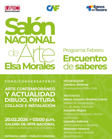 No te pierdas el conversatorio Arte contemporáneo en la actualidad a realizarse en la sala 1 de la Galería de Arte Nacional en el marco del Salón de Arte Elsa Morales.