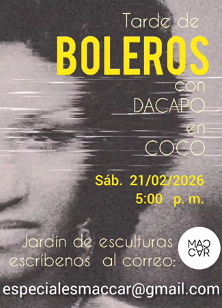 Te invitamos a una velada inolvidable en el Jardín de Esculturas del MACCAR. Déjate llevar en una Tarde de Boleros con las voces del Grupo Vocal DaCapo: un recorrido por los boleros más emblemáticos.
