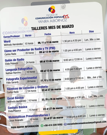 La Escuela de Comunicación Popular Yanira Albornoz abre sus inscripciones para los talleres de marzo, ofreciendo formación en áreas que van desde la producción de medios hasta herramientas técnicas y matemáticas.