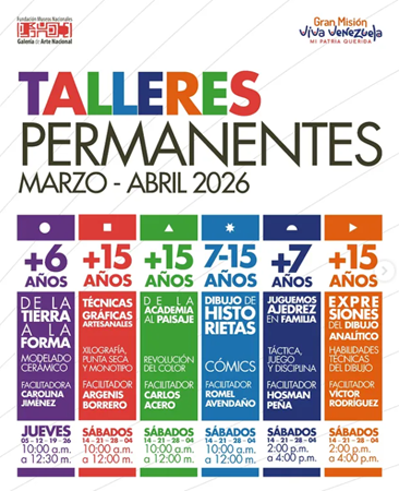 A la Galería de Arte Nacional, llegaron los Talleres Permanentes de Marzo - Abril 2026.