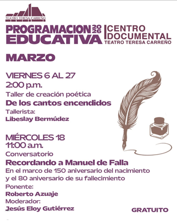 Este mes la Sala de Lectura del Centro Documental Teatro Teresa Carreño, se convierte en el epicentro de la palabra, la música y la danza. Te invitamos a formar parte de nuestra variada programación cultural.