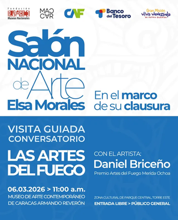 En el marco de la clausura del Salón Nacional de Arte Elsa Morales, te invitamos a una visita guiada y conversatorio sobre Las Artes del Fuego junto al artista Daniel Briceño, Premio Artes del Fuego Mérida Ochoa.