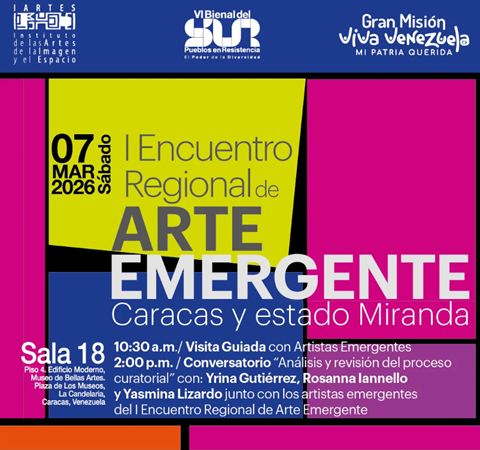En el marco de la VI Bienal del Sur. Pueblos en Resistencia "El Poder de la Diversidad", el Encuentro Regional de Arte Emergente (Distrito Capital - Miranda), realizará una visita guiada al público en la sala 18, piso 4, edificio moderno del Museo de Bellas Artes (MBA).