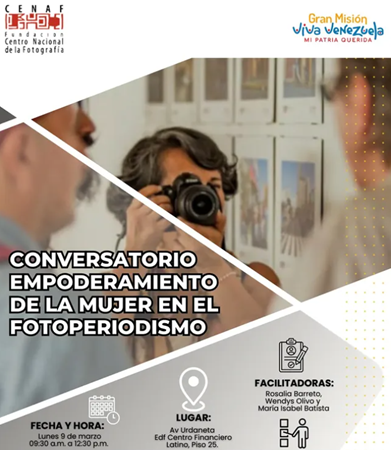 El CENAF te invita al Conversatorio: Empoderamiento de la Mujer en el Fotoperiodismo. La cámara también es voz y mirada. Este encuentro celebra el papel de las mujeres en el fotoperiodismo, su fuerza para narrar la realidad y transformar la memoria colectiva.