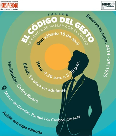 El Museo de Ciencias, en alianza con el mimo Carlos Rivero, te traemos el maravilloso Taller «Código del Gesto» orientado a jóvenes y adultos, buscará enseñarles y alcanzar la excelencia a través de la oratoria y el lenguaje corporal. ¡CUPOS LIMITADOS!