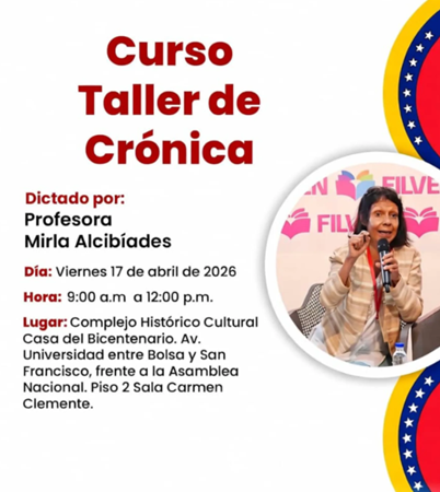 El Centro Nacional de Estudios Historicos te invita a participar en el Curso Taller de Crónica, un espacio para explorar el arte de narrar la realidad con profundidad y estilo. ¿Quién mejor para guiarnos? Tendremos el honor de contar con la destacada profesora Mirla Alcibíades