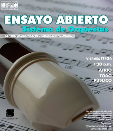 Todo el talento del Sistema de Orquesta Centro Académico Regional núcleo la Rinconada en el Museo Alejandro Otero podrás disfrutarlo a través de un ensayo abierto y del programa Apoyo Institucional.