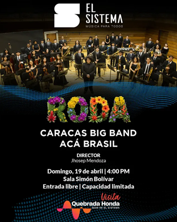 Prepárate para vivir RODA, un encuentro musical donde la Caracas Big Band y Acá Brasil nos llevarán en un viaje sonoro a través de los ritmos brasileños bajo la dirección de Jhosep Mendoza, en una tarde de fusiones musicales.