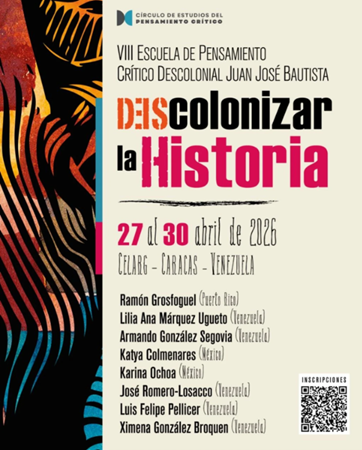El Centro de Estudios Latinoamericanos y del Caribe Rómulo Gallegos (CELARG) anuncia la octava edición de la Escuela de Pensamiento Crítico Descolonial Juan José Bautista, bajo el título Descolonizar la historia, del 27 al 30 de abril de 2026. El encuentro se llevará a cabo en la sede del CELARG, ubicada en Caracas, Venezuela, y está dirigido a investigadores, estudiantes y público interesado en estudios descoloniales.