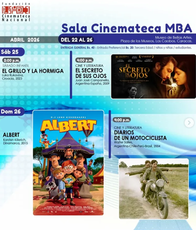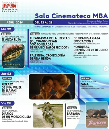 Visita las redes de La Cinemateca Nacional y entérate de su programación en las salas del MBA y UNEARTE, para todas las edades de jueves a domingo y con entrada libre.