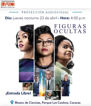 Este jueves el Museo de Ciencias te invita a la proyección de la película Figuras Ocultas. Acompañaremos a Dorothy, Katherine y a Mary en su largo camino dentro de la NASA de los años 60 en donde se enfrentarán a los retos y obstáculos marcados por una época de tensión política.