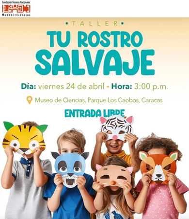 ¡Crea y convierte tu rostro en tu animal favorito! El Museo de Ciencias te invita a su taller gratuito Tu rostro salvaje. Este taller orientado a niñas y niños hasta los 12 años, tendrá como objetivo construir y crear máscaras de animales de los ecosistemas venezolanos, además de aprender sobre su conservación y su protección.