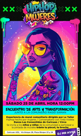 El hip hop hecho por mujeres llega junto a @le_talier en un Encuentro de Arte y Transformación junto a la Comunidad Ragid Saman de la parroquia Caricuao UD2 desde las 12 del mediodía, música, grafiti, Te esperamos.